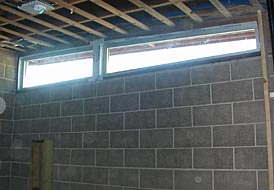 The window frame is then lifted at each end one block height at a time until it's lined