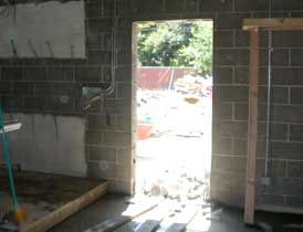 once again to cut the final five holes in the back wall of the house. This is the door