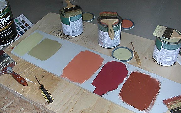 07.18.04 A paint swatch sampling of potential interior and exterior colors. The dark