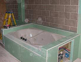 The greenboard around the master bath and shower walls. Because they will be