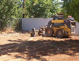 Once the soil is graded and combed, the weedy, trash covered site is transformed