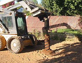 uses an aug attachment to drill 8 inch x 24 inch fence post holes in the back yard.