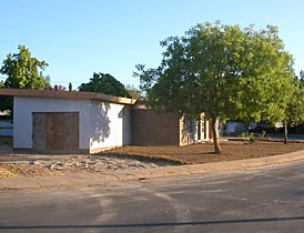 The garage, before and after the tar and gravel.