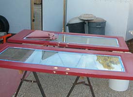 Steve sprays clear epoxy on the front door jambs and trim to protect the metallic